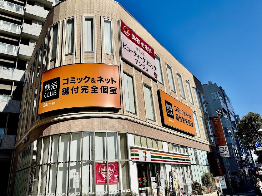 中央改札を出て左側(東口)に進み、左手にファミリーマートさんがある道をまっすぐ進んでいくと、1階にセブンイレブンさん、2階に快活クラブさんがはいっているビルがみえてまいります。当院は3階ですので、エレベーターでお上がりいただきドアを開けてお入りください。